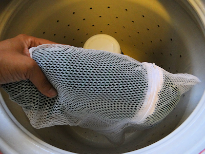 Once you have it loosened up, close it up in the laundry bag. If you have more than one skein of yarn, I suggest using separate bags for each skein.